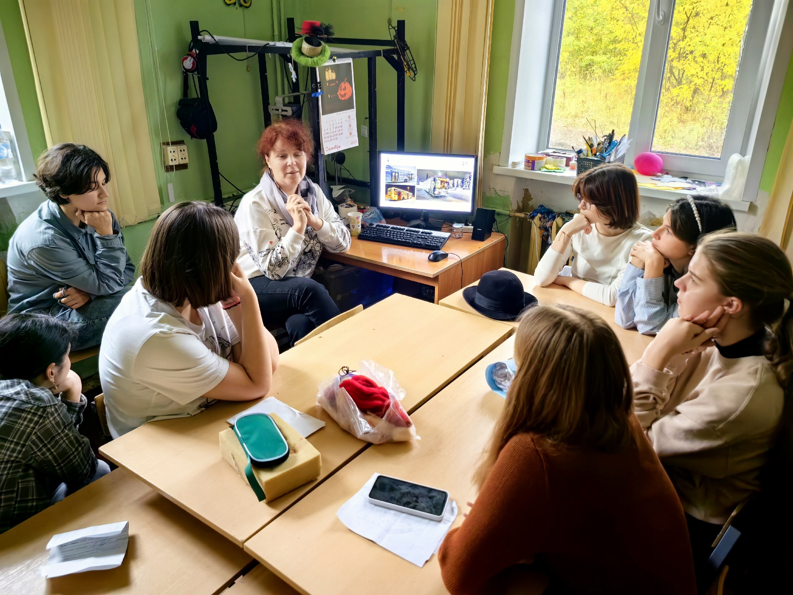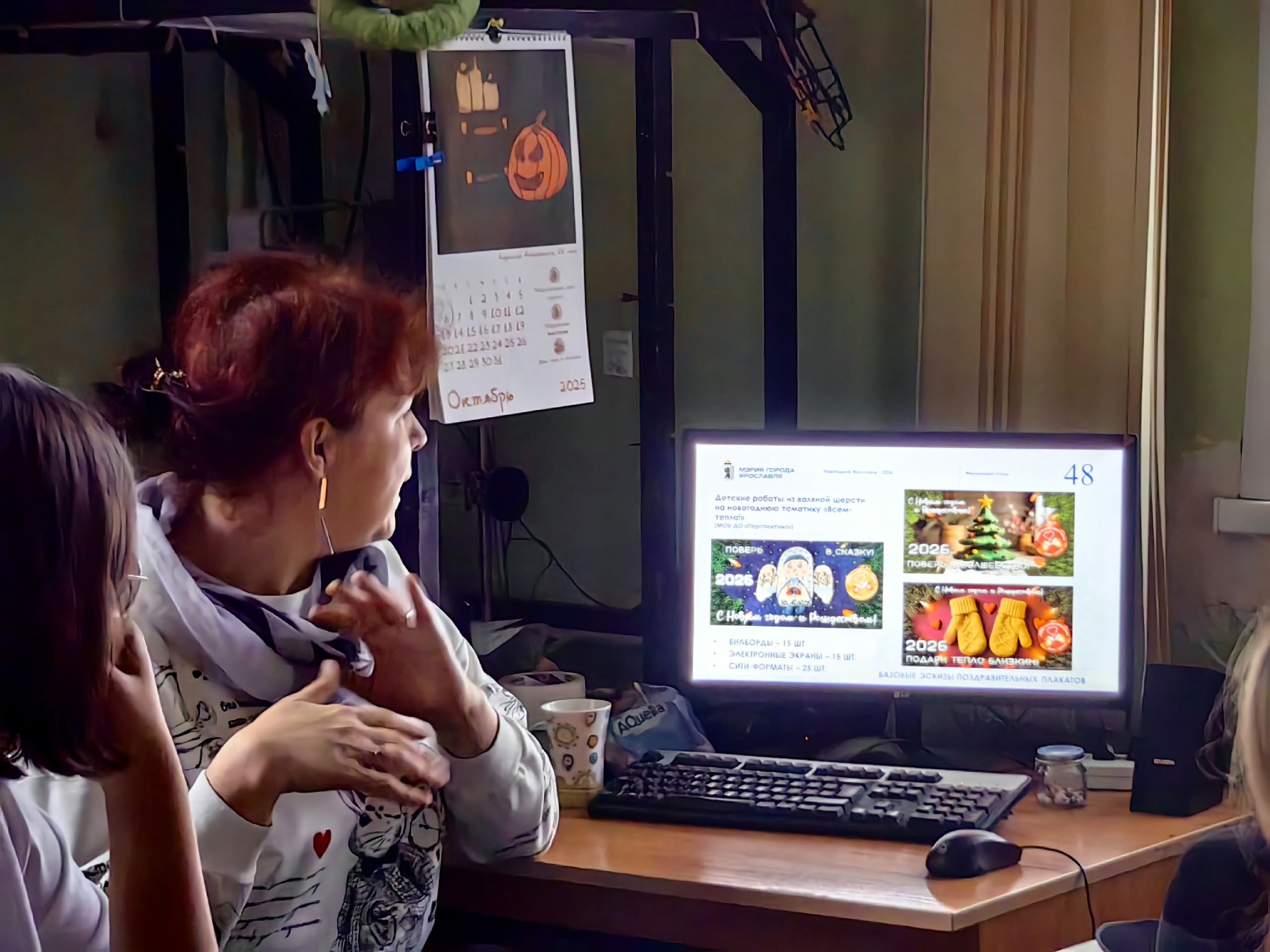 В этом году нам интересно создать работы, которые могут выступать, как рекламный продукт. В рекламе есть свои законы. С ними нас познакомили Ольга Витальевна Зайцева - начальник отдела праздничного и информационного оформления города Ярославля и главный специалист Кузина Мила Максимовна. Встреча прошла тепло. Ребята познакомились с рекламными хитростями оформления города к празднику, активно обсуждали свои новогодние проекты со специалистами. Рекламные объекты подчиняются своим законам, достаточно сложно было переработать свои новогодние идеи, принимая во внимание полученные знания. Девушки активно включились в работу. Постараемся ближе к празднику познакомить вас с тем, что у нас получится.