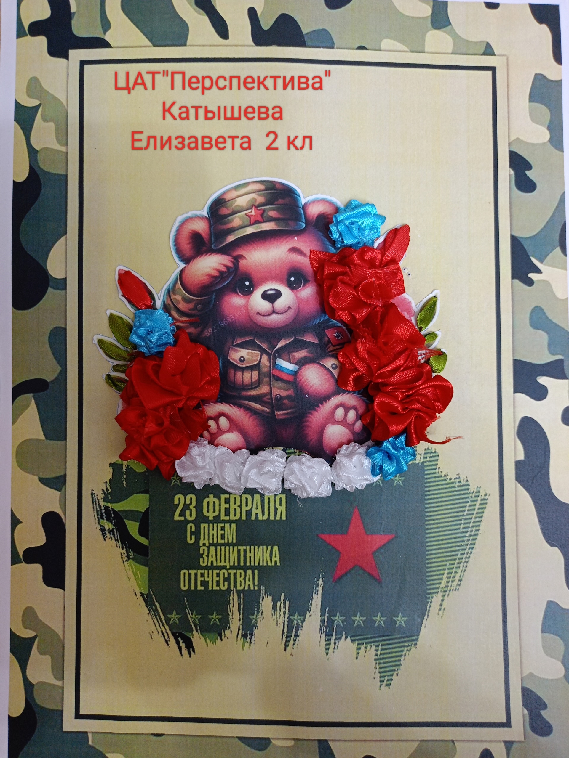 Еще одним новшеством стала номинация "Открытка-поздравление для солдата". Катышева Лиза - обучающаяся объединения «Вышивка лентами», педагог Светлана Викторовна Ошарина, заняла 1 МЕСТО!. Поздравляем!!!
